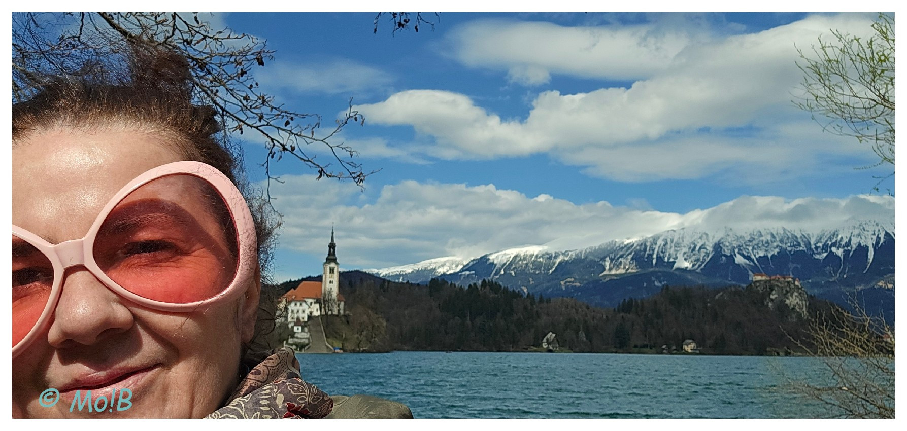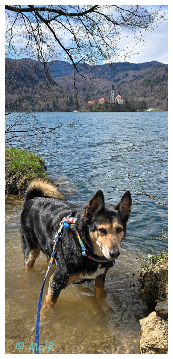- mimo aury zdecydowałam się podjechać nad jez.Bled w Słowenii, a tam: OLŚNIENIE! Dosłownie i w przenośni: miejsce olśniewające, słońce lśniło, góry lśniły, jezioro lśniło, na mojej gębie lśnił uśmiech, a Hasiek się cudownie uszczęśliwił 😀