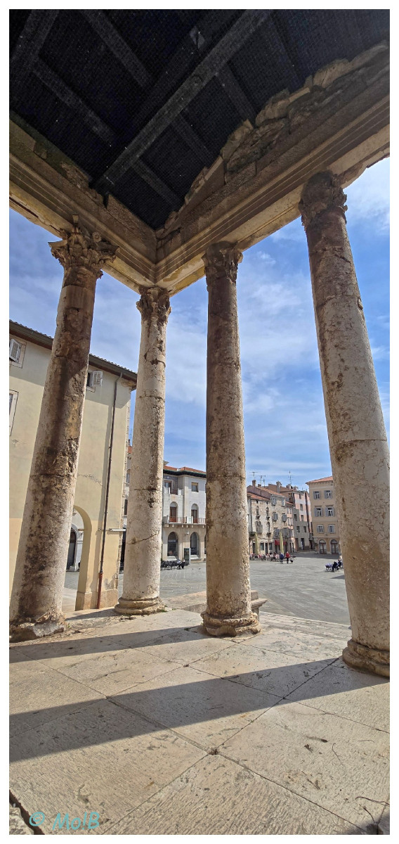 Absolutnie fantastyczne miasteczko! Ponoć najstarsze w Słowenii - niestety, główna atrakcja, czyli tzw. Pomnik Orfeusza, był wciąż zasłonięty na zimę (nad czym płakałam rzewnymi łzami), ale lapidarium wmurowane w wieżę miejską + parę innych detali wynagrodziło mi z nawiązką stratę 🙂