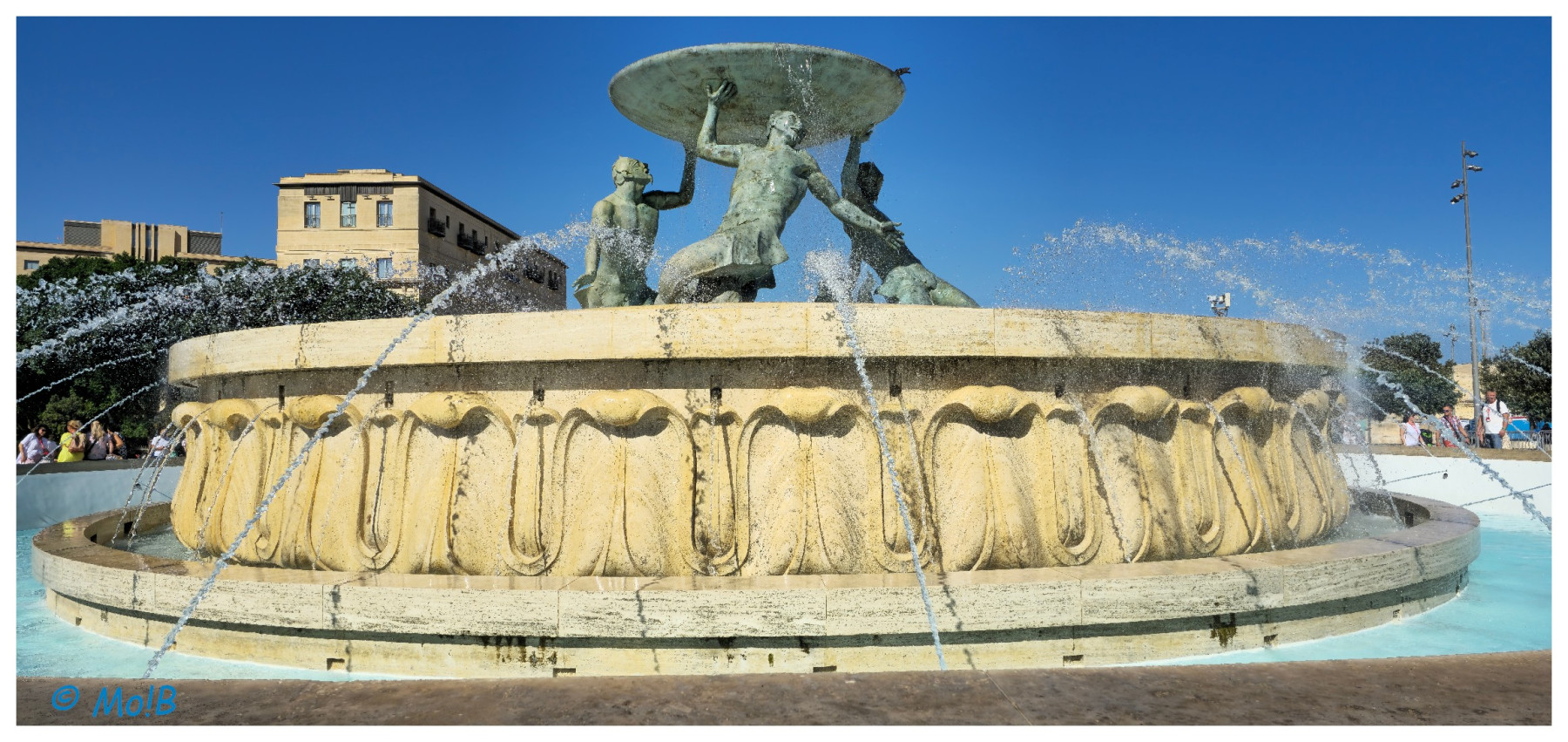 Pierwsze (z serii wielu następnych) foto Fontanny Trytona. WALKA z kluczem i drzwiami 😉 co opóźniło wyprawę na południe - autobusem do Blue Grotto, ale że „boats today are not operating” kąpiel w przeuroczym kanionie.