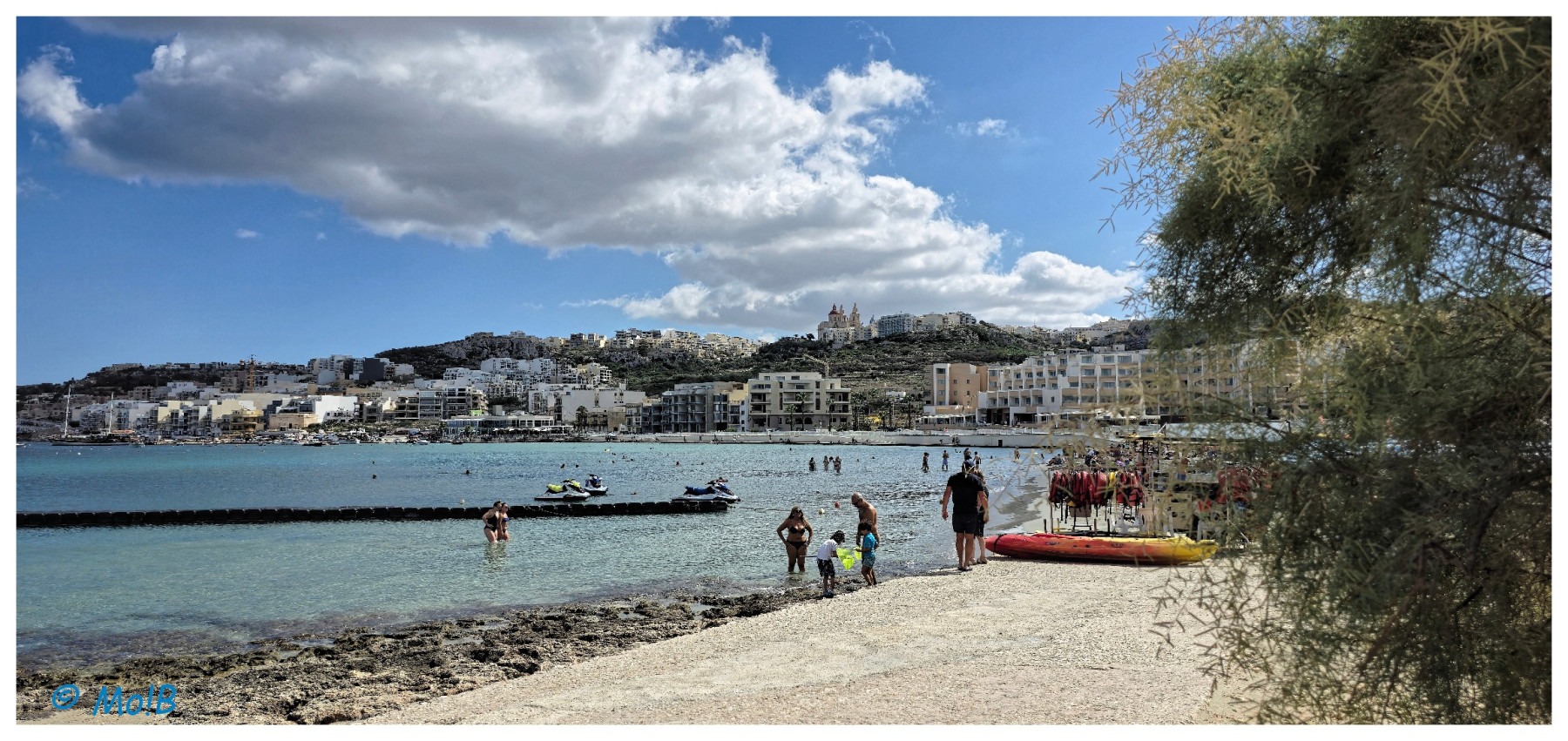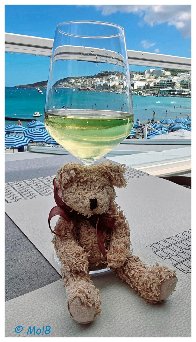 - przejechałam autobusem do Mellieha Bay natłok parasoli i słońca zniechęcił mnie do kąpieli zażyłam tylko frutti di mare i winka z widokiem na statki na niebie i przejechałam do Mellieha city